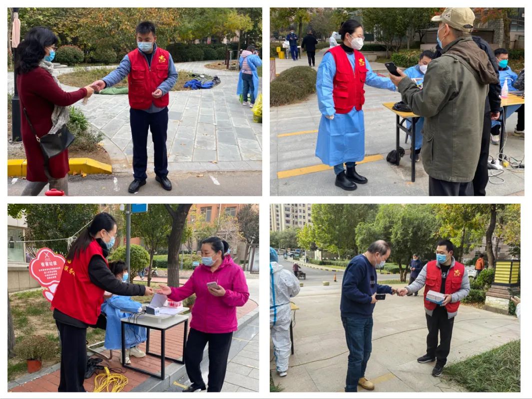 志愿服務(wù)暖人心。志愿者們準(zhǔn)時(shí)到達(dá)社區(qū)核酸采集點(diǎn),在各個(gè)檢測點(diǎn)幫助維持秩序,引導(dǎo)群眾保持安全距離,有序檢測,幫助老年群眾注冊核酸檢測信息碼,發(fā)放核酸檢測貼紙,宣傳疫情防控法律法規(guī),針對群眾提出的各項(xiàng)疑問進(jìn)行耐心解答。志愿者們在不同的崗位上履職盡責(zé),配合社區(qū)工作人員、醫(yī)務(wù)工作者明確分工、協(xié)調(diào)配合,大大提高了檢測效率,確保了社區(qū)按時(shí)完成全員核酸檢測工作。
